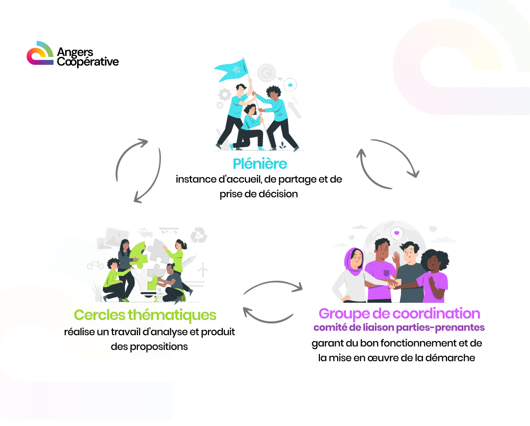 Chaque mois, les citoyens engagés se rassemblent pour partager, débattre et décider ensemble. Chacun y a sa place, selon le principe simple et juste : "une personne, une voix".